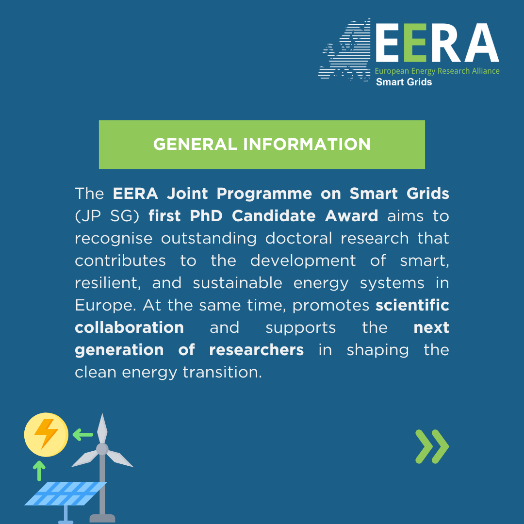 The EERA Joint Programme on Smart Grids (JP SG) is pleased to launch its first PhD Candidate Award, recognising outstanding doctoral research that contributes to the development of smart, resilient, and sustainable energy systems in Europe.